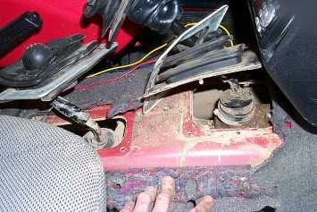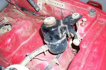 ![]() | - Enlever les 2 vis du répartiteur de freinage avant-arrière (longeron avant droit sous la batterie). |